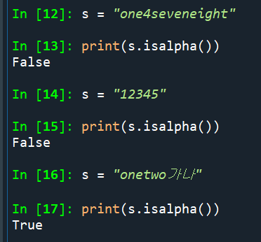 공백, 특수문자, 숫자가 포함되어 있으면 False를 반환한다.