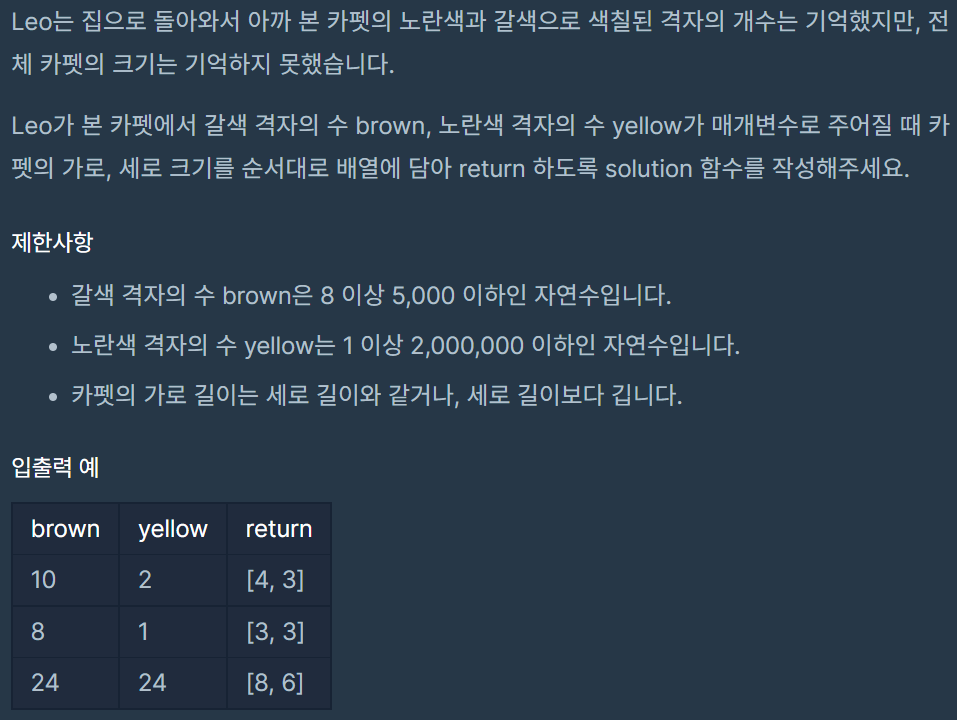 https://programmers.co.kr/learn/courses/30/lessons/42842?language=python3