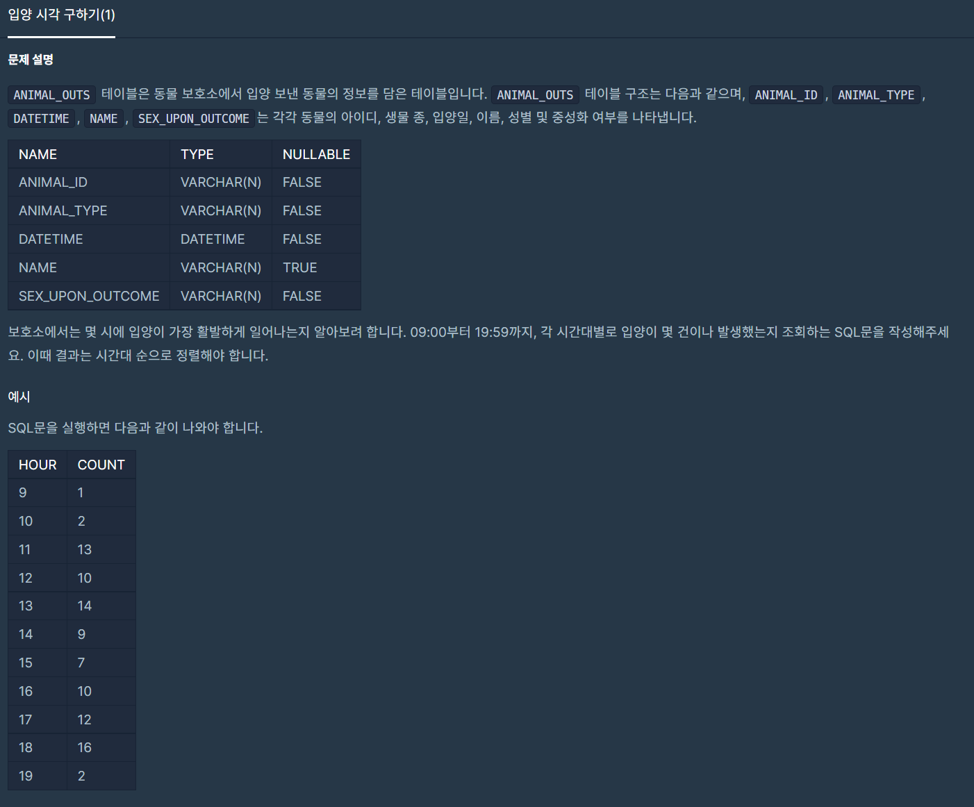 코딩테스트 연습 - 입양 시각 구하기(1)