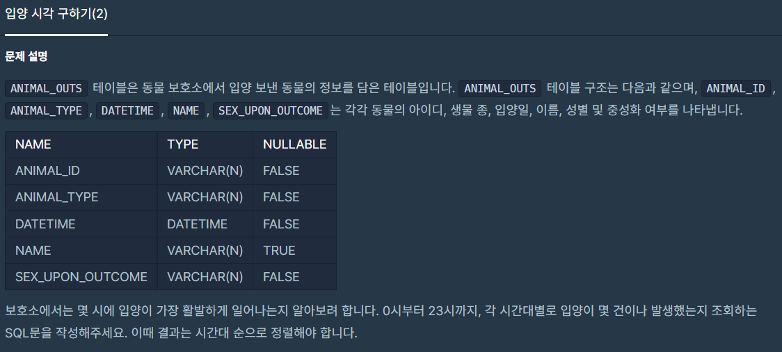 코딩테스트 연습 - 입양 시각 구하기(2)