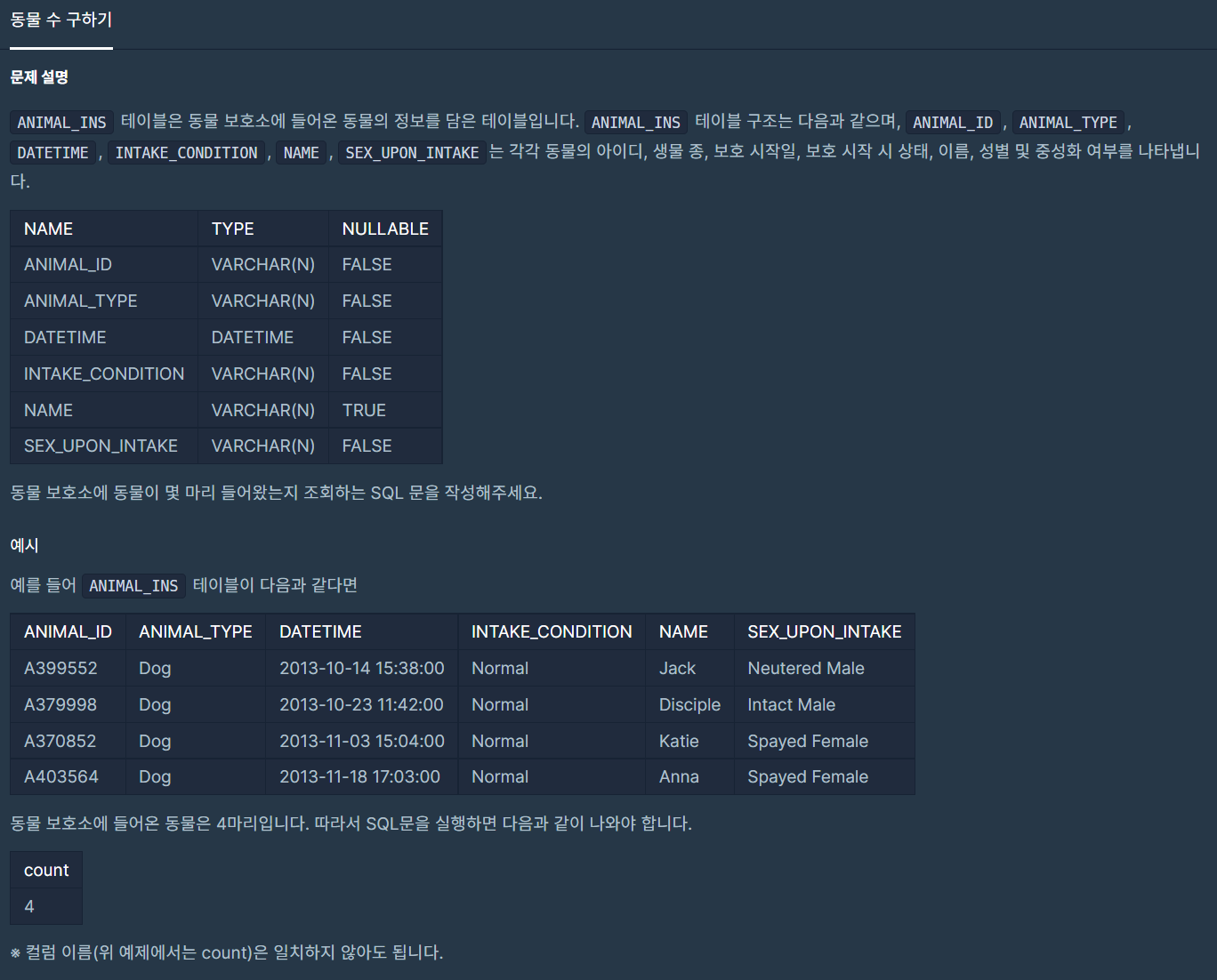 총 동물의 수가 얼마인지 count를 써서 구할 수 있는 문제였다.