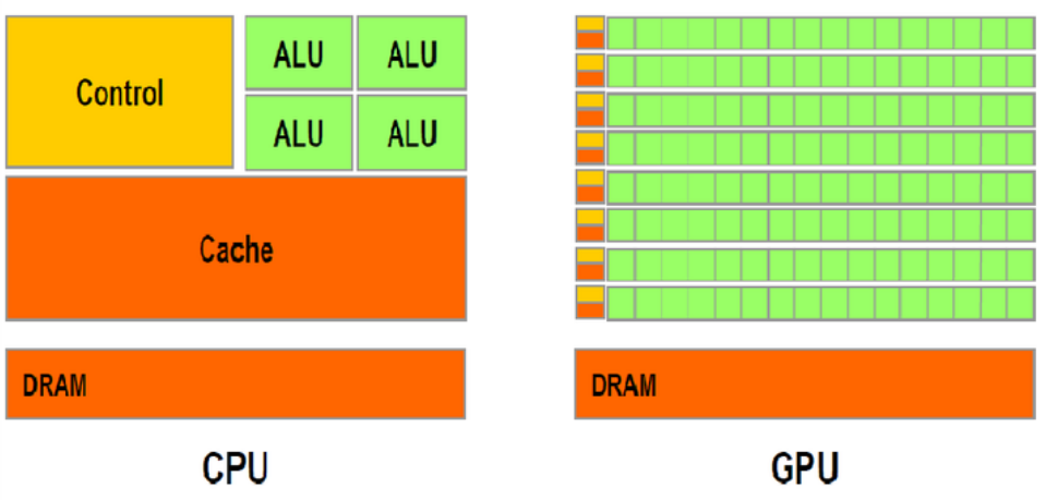 GPU는 특화된 연산만 처리하기 위해 제어 부분이나 복잡한 구조를 버리고 다수의 성능이 적은 ALU만 존재한다. 때문에 GPU 단독으로 작업을 처리할 수 없으며 CPU가 GPU를 제어한다.