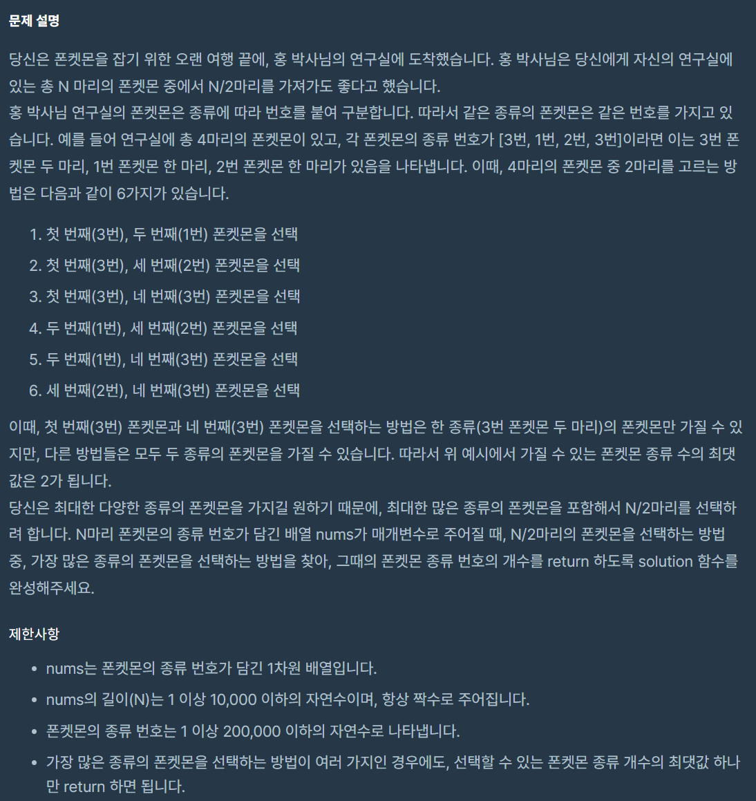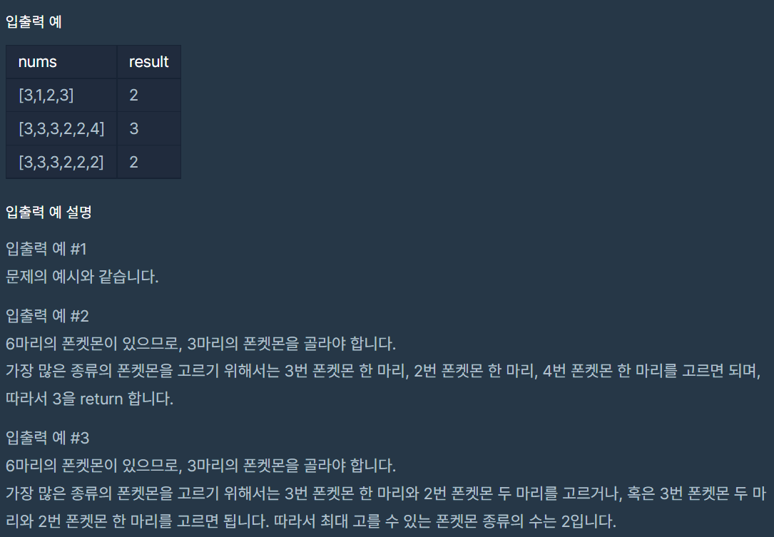 코딩테스트 연습 - 폰켓몬