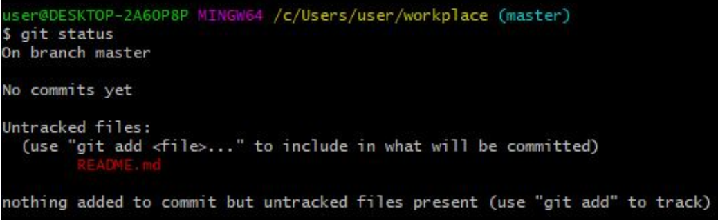 로컬 저장소를 만들고 파일까지 만들었다면 git이 제대로 추적하고 있는지 확인할 수 있다.