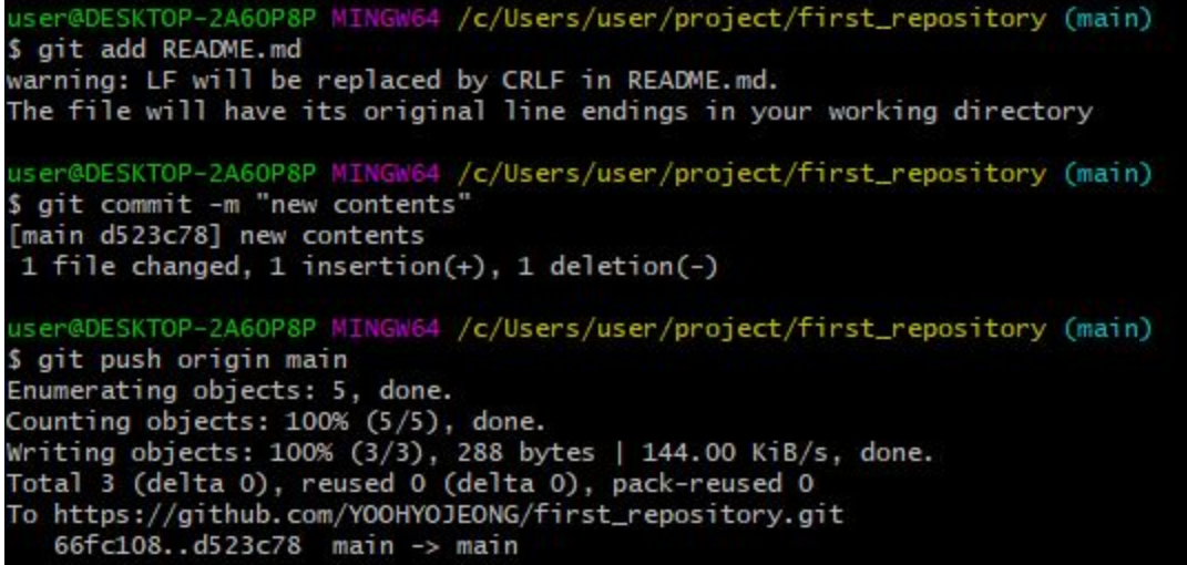 이렇게 로컬 저장소에서의 리드미 파일도 수정된 파일로 변경된 것을 알 수 있다.