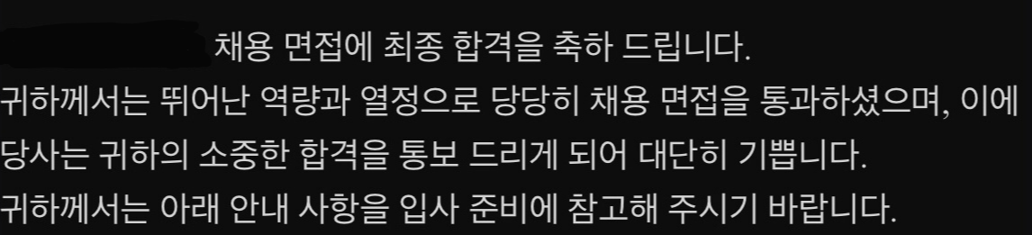 오픈 채팅방에서 나의 현실과 위치를 깨달을 수 있었고 어떤 것들을 중점으로 공부해야하는지, 취업 시장은 어떤 분위기인지 등등 많은 것을 알 수 있었다. 덕분에 나는 최종 합격한 곳들 중 2곳은 거절도 할 수 있는 사람이 되었다.