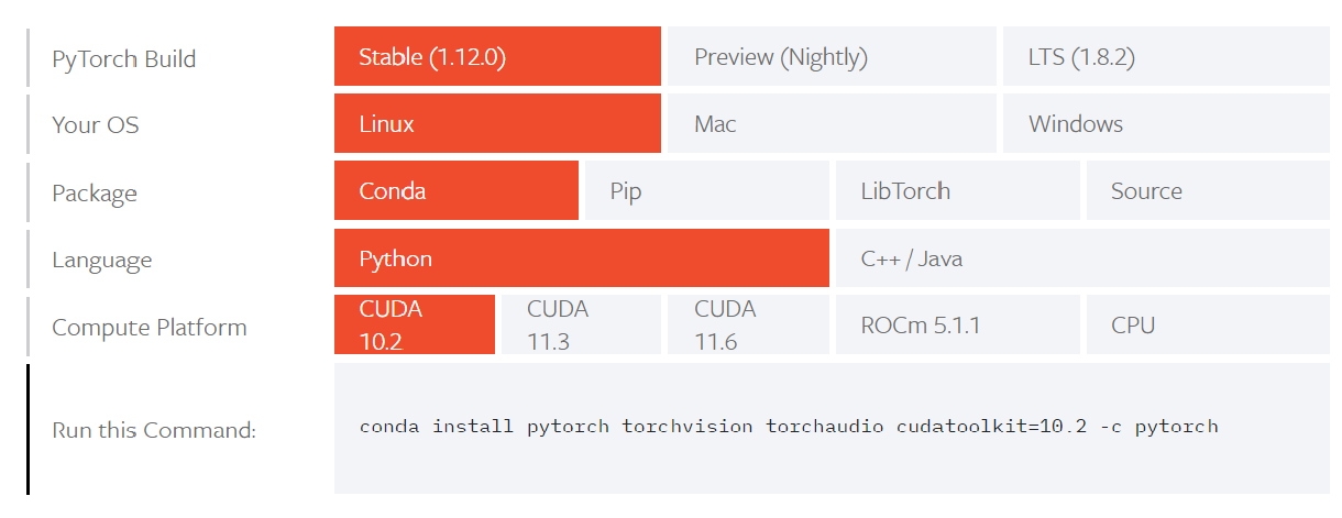 CUDA 10.2를 선택하여 cudatoolkit=10.2로 pytorch를 재설치하였다.