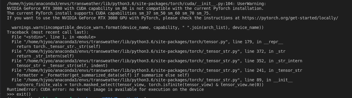 RuntimeError: CUDA error: no kernel image is available for execution on the device