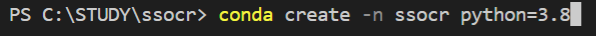 ssocr이라는 이름의 가상환경을 vscode에서 만드려고 했으나