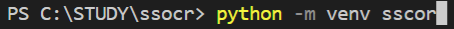 가상환경을 생성하고자 하는 workspace 폴더로 이동한 후 python -m venv ssocr을 입력 해 준다.