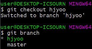 master branch에서 새로 생성한 hjyoo branch로 이동된 것을 볼 수 있다.