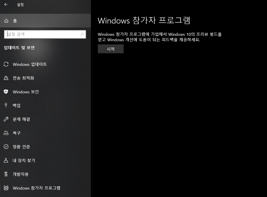 이후 pc를 재시작하면 윈도우 참가자 프로그램에 등록이 완료된다.