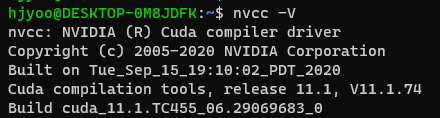 이후 wsl2를 재시작 후 nvcc - V를 입력하면 제대로 뜨는 것을 확인할 수 있다.