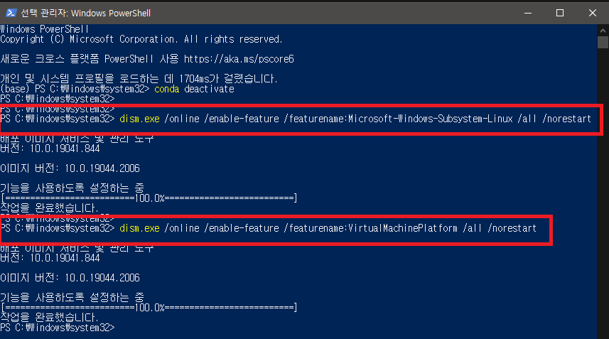 1. PowerShell 명령어 입력 1 (wsl 환경 설정)