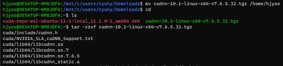 tar -xzvf '다운받은 cudnn 파일'