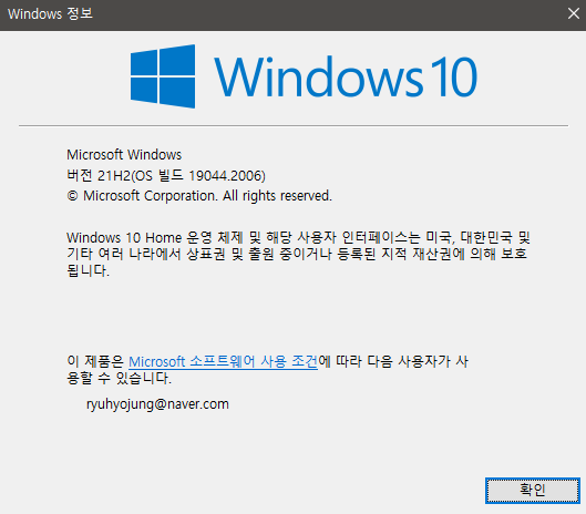 Window + R 누른 후 winver를 입력하면 window 빌드 버전을 확인할 수 있다.
