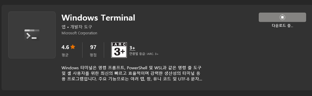 윈도우 터미널은 정말 유용하게 쓰이기 때문에 wsl2을 사용하지 않더라도 설치하면 정말 정말 편할 것이다!!