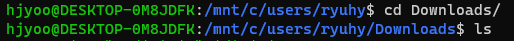 해당 명령어를 입력해 Downloads 폴더까지 진입한다. (/mnt/c/ <- 이게 윈도우에 마운트 된 c드라이브 위치이다.)
