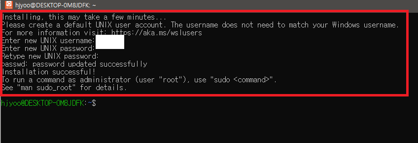 이후 아래 명령어를 실행하여 ubuntu setup을 마저 해 준다.