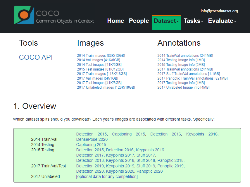 보통, coco dataset은 아래 링크에서 다운로드가 가능하다.