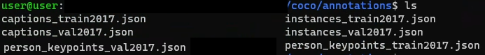 다운로드 후 압축 파일을 풀 디렉토리로 이동한 후 아래 명령어들을 입력하여 coco dataset을 다운로드 받으면 된다.