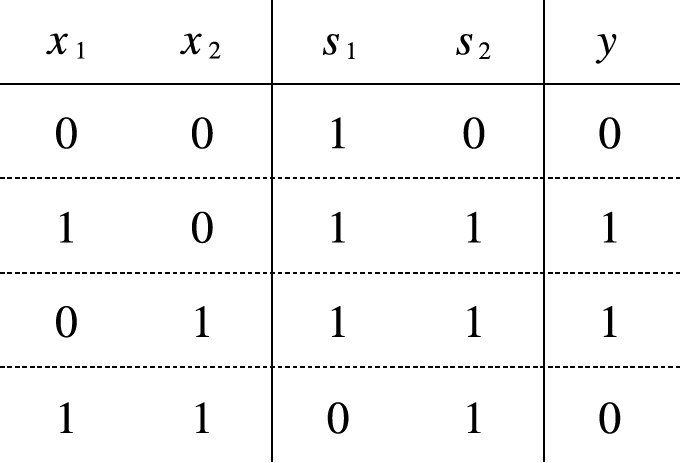 그림 2-11과 같은 조합이라면 XOR 게이트를 구현할 수 있다.
