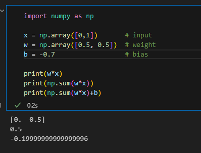 넘파이를 사용해서 식 2.2를 구현하면 아래와 같다.