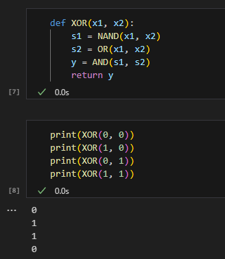 XOR 게이트를 파이썬으로 구현하면 다음과 같다.