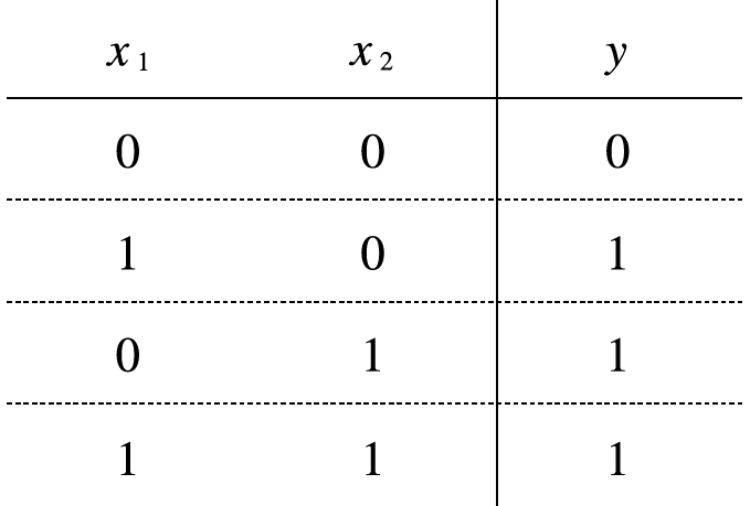 OR 게이트는 다음과 같이 구현할 수 있다.