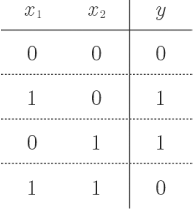 XOR 게이트는 배타적 논리합이라는 논리 회로로, 두개의 입력 중 한쪽이 1일 때만 1을 출력한다.