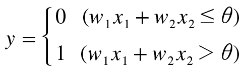 입력 신호가 뉴런에 보내질 때는 각각의 고유한 가중치가 곱해진다. 뉴런에서 보내온 신호의 총합이 정해진 한계(임계값, θ)를 넘어설 때만 1을 출력하며 이를 뉴런이 활성화한다 라고 표현하기도 한다.