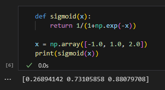 시그모이드 함수는 파이썬으로 다음과 같이 작성할 수 있다.
