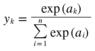 n은 출력층의 뉴런수, yk는 그 중 k번째 출력임을 의미한다.