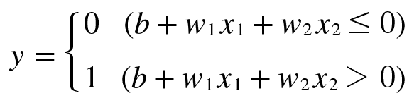식 3.2는 입력 신호의 총 합이 h(x)라는 함수를 거쳐 변환되어 그 변환된 값이 y의 출력이 됨을 보여준다. 식 3.3의 h(x) 함수는 입력이 0을 넘으면 1을 돌려주고 그렇지 않으면 0을 돌려 준다.