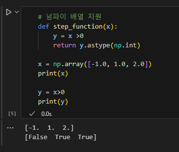 이는 x가 실수만 받아들이지만 넘파이 배열도 지원하도록 수정하면 아래와 같다.
