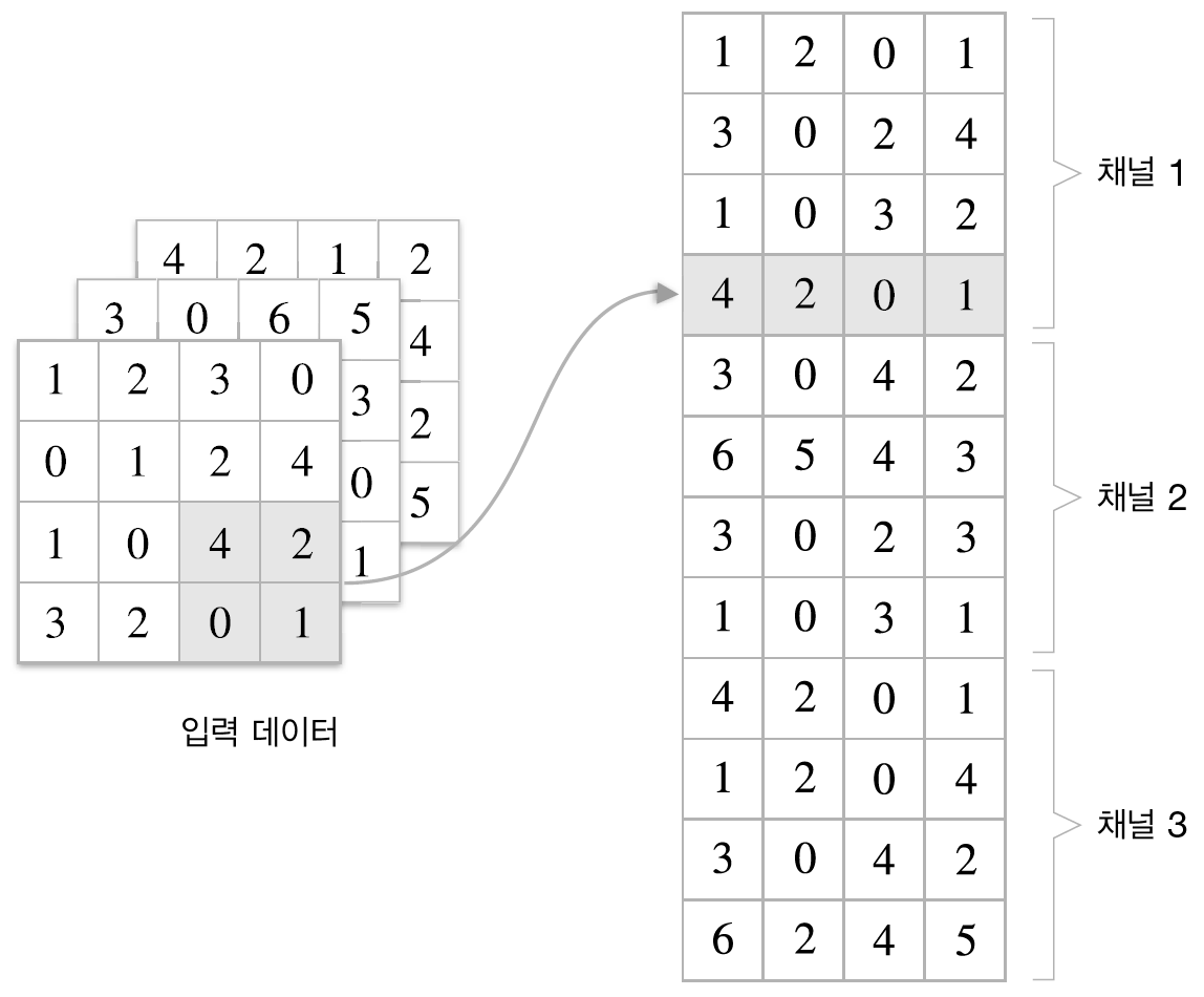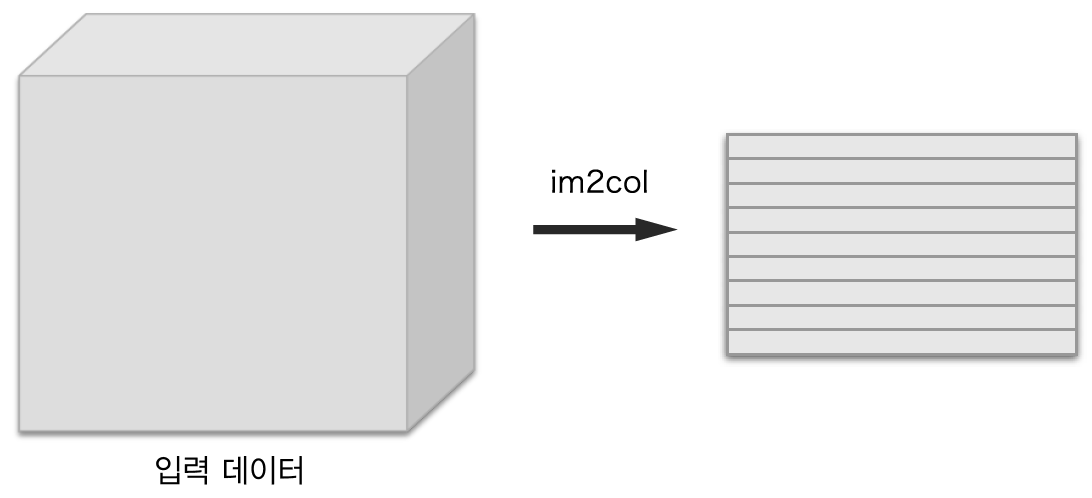 im2col은 필터링 하기 좋게 입력 데이터를 전개한다.