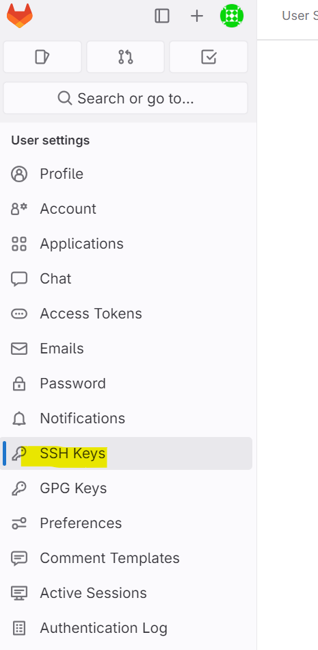 gitlab에 들어가서 SSH Keys를 누르면 발급 받은 key를 등록할 수 있다.
