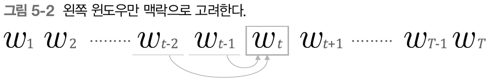 word2vec의 CBOW 모델을 억지로 언어 모델에 적용하려면 맥락의 크기를 특정 값으로 한정해 근사적으로 나타낼 수 있다.