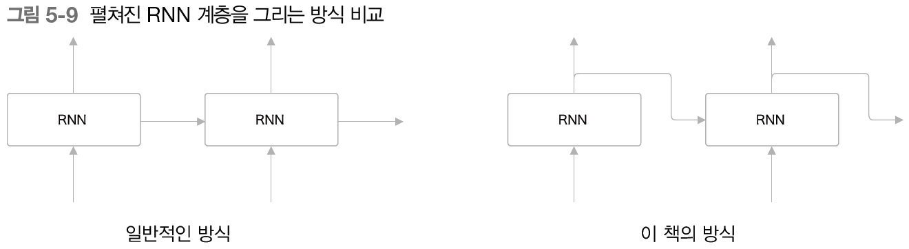 이때 Time RNN 계층 내에서 한 단계의 작업을 수행하는 계층을 RNN 계층이라고 하고 T개 단계분의 작업을 한꺼번에 처리하는 계층을 Time RNN 계층이라고 한다.