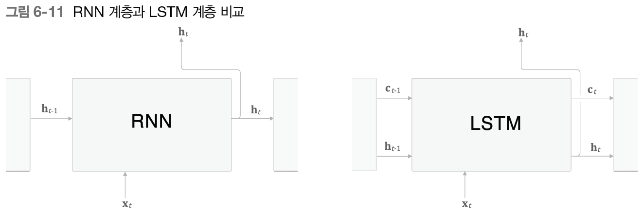 요즘에는 앞 장의 단순한 RNN 대신 LSTM이나 GRU라는 계층이 주로 쓰인다. RNN이라고 하면 앞 장의 RNN이 아니라 LSTM을 가리키는 경우도 흔하다.