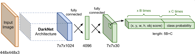- SxS grid cell로 input image를 분리 후 cell 마다 n개의 bbox, confidence score, class probabilities 예측