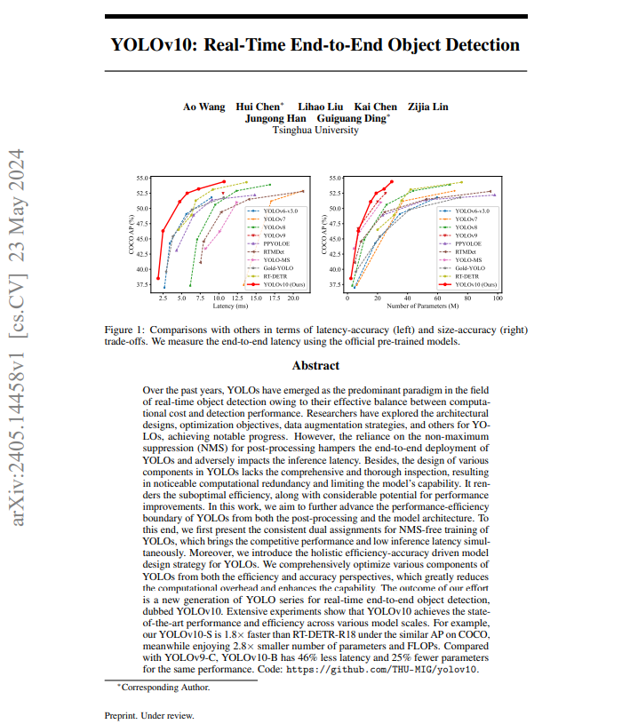 YOLOv10: Real-Time End-to-End Object Detection, Ao Wang, et al., 2024 를 읽고 요약, 정리한 글입니다.