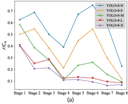 YoloV8을 보면 깊은 단계와 큰 모델이 더 많은 중복성을 나타내는 경향이 있음을 알 수 있으며 이는 모든 stage에 동일한 블록 설계를 단순히 적용하는 것이 최고의 용량-효율성 트레이드 오프에 최적이 아님을 시사한다.