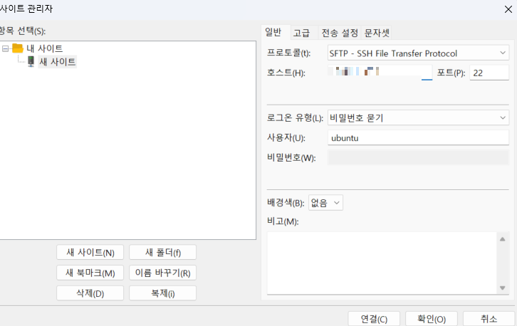 전달받은 ip와 user id를 입력하면 pw를 입력하지 않아도 ppk 덕분에 filezilla에서도 연결이 된다.