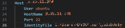vscode에서 ssh config 파일을 열어서 user id(User)과 ip(HostName), port를 입력 하고 다른 원격 서버와는 달리 password대신 IdentifyFile을 적어줘야 한다. 여기에는 3번에서 저장한 ssh key의 파일명(pull path)을 넣어주면 remote 연결이 된다.