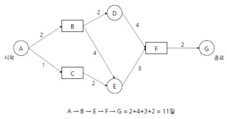 - 작업 간의 선후관계를 정리하고 가장 길게 걸리는 경로를 찾아 프로젝트 기간을 결정