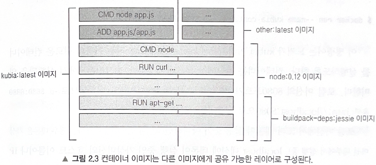 이미지는 하나의 큰 바이너리 덩어리가 아니라 여러 개의 레이어로 구성 되어 있으며 서로 다른 이미지가 여러 개의 레이어를 공유할 수 있기 때문에 이미지 저장과 전송에 효과적임.