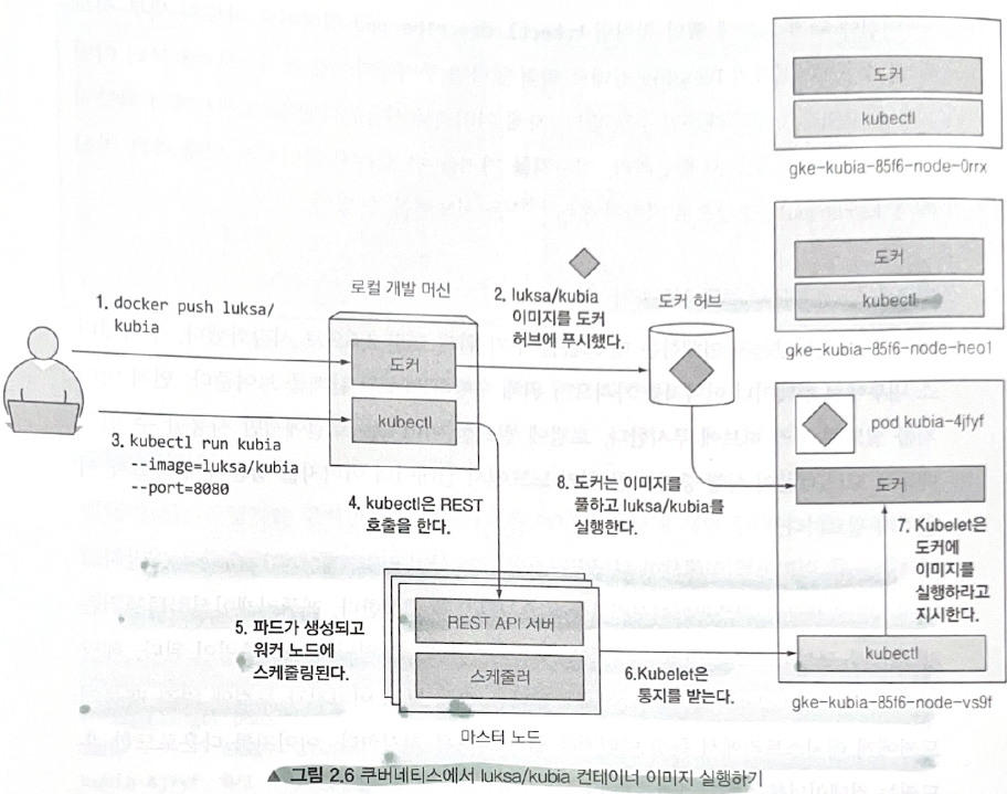 - 쿠버네티스의 API 서버로 REST HTTP 요청을 전달하고 클러스터에 새로운 레플리케이션컨트롤러 오브젝트 생성.