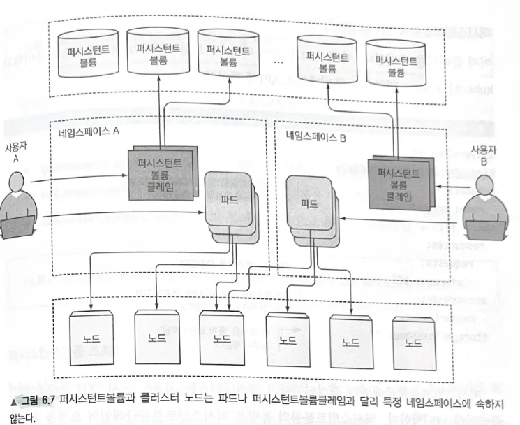 - 이후 퍼시스턴트볼륨클레임은 파드 내부의 볼륨 중 하나로 사용될 수 있음.