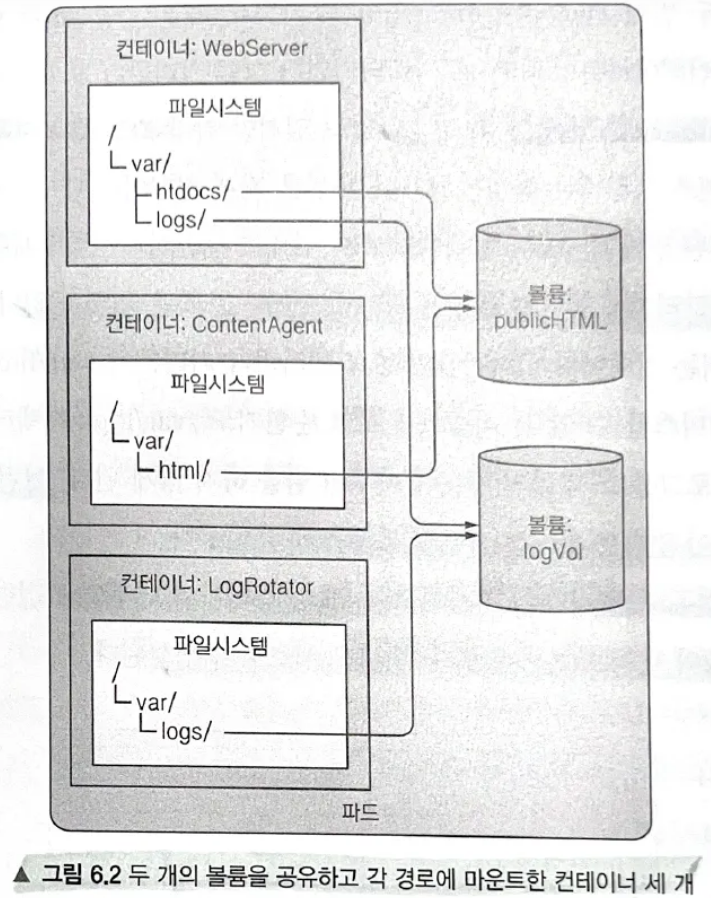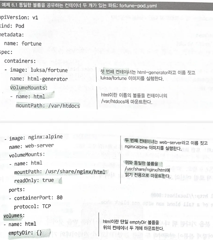 - 파드에 실행 중인 애플리케이션은 어떤 파일이든 볼륨에 쓸 수 있음.